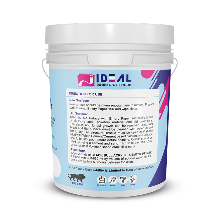 Superior Prep for a Flawless Finish IDEAL BLACK BULL Acrylic Primer Aqua Base is a high-performance, water-based primer formulated to provide the perfect foundation for your interior and exterior walls. Achieve a professional, smooth, and long-lasting paint finish by starting with the best base.