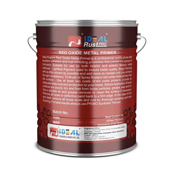 RUST PRO Red Oxide Primer: A high-quality primer for metal surfaces, providing superior rust protection and enhancing paint adhesion. Formulated with red oxide pigments, it fills imperfections, dries quickly, and offers long-lasting durability. Ideal for indoor and outdoor use, ensuring reliable protection against corrosion